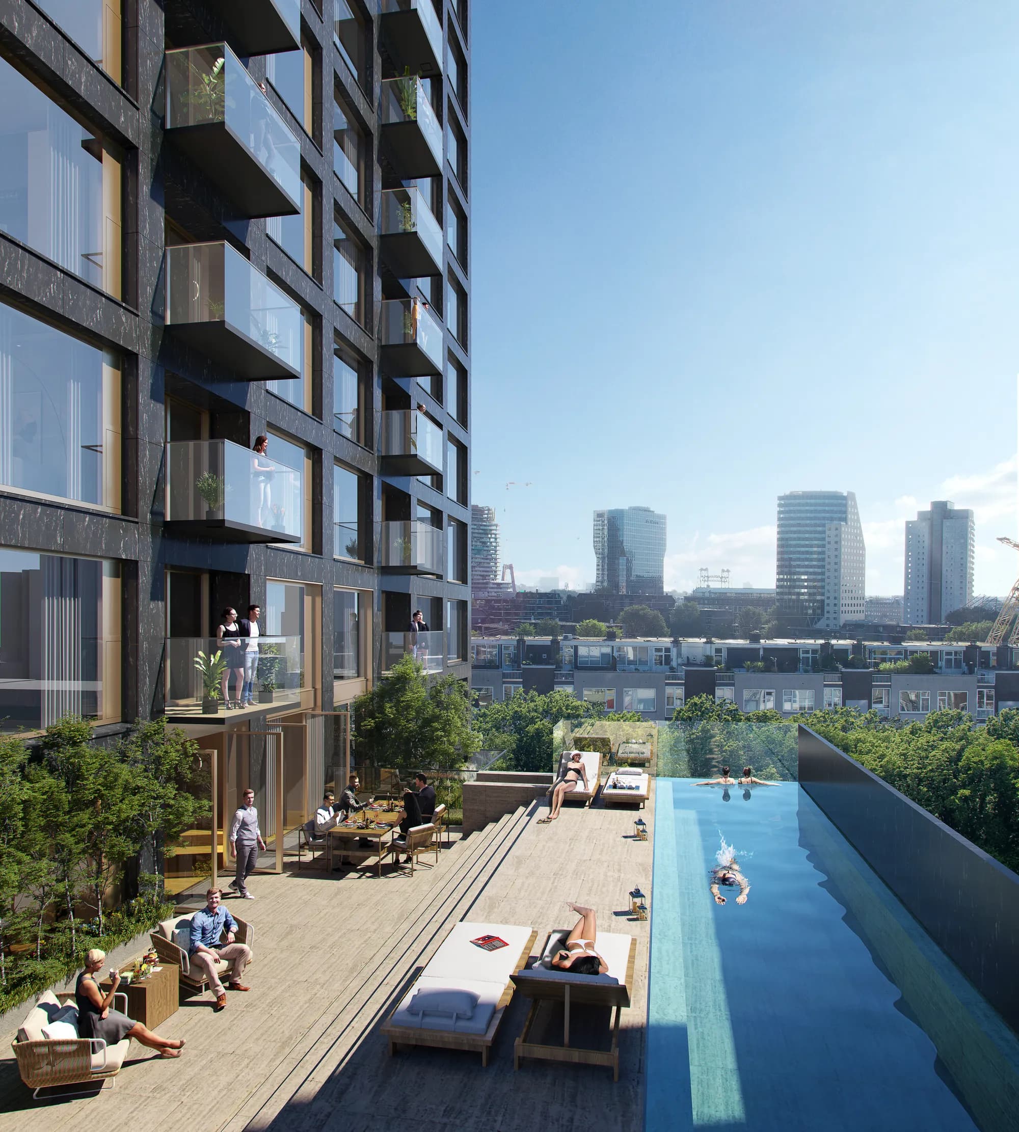 In The BaanTower kunnen de nieuwe bewoners volop genieten van alles wat Rotterdam ze te bieden heeft. Alle nieuwe bewoners kunnen gebruik maken van gedeelde voorzieningen voor werken, sporten en ontspanning. Je kan een wandeling maken door de daktuin, gebruikmaken van de fitnessruimte, werken in de bibliotheek, een frisse duik nemen in het zwembad of de gemeenschappelijke woonkamer reserveren voor een verjaardag of etentje met vrienden. Willen je gasten een nachtje blijven slapen? Geen probleem! Voor hen reserveer je een gastenappartement.