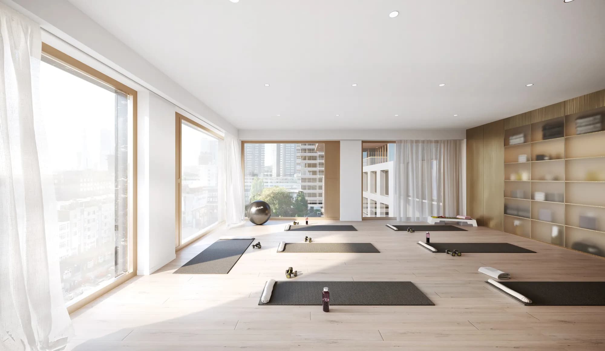 De yoga en fitnessruimte dragen bij aan een gezonde levensstijl van de bewoners